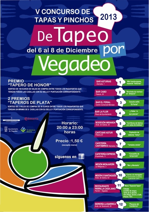 ¡Ya está aquí! Del 6 al 8 de diciembre, 5º Concurso de Tapas y Pinchos "De Tapeo por Vegadeo".