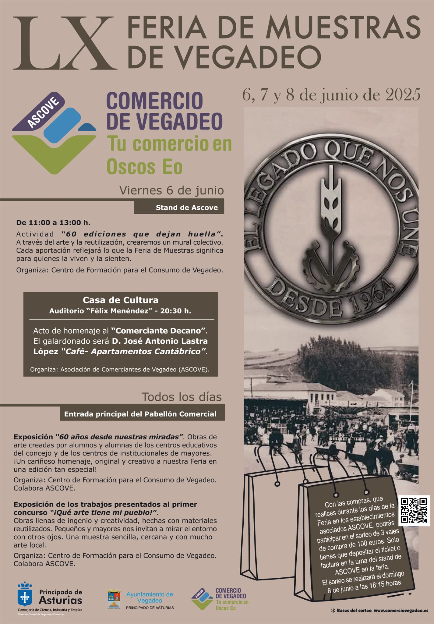 La Asociación de Comerciantes de Vegadeo (ASCOVE) participará un año más en la Feria de Muestras de Vegadeo, que este 2025 celebra su 60ª edición los días 6, 7 y 8 de junio.