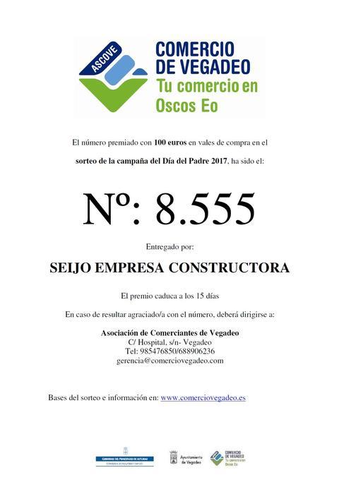 Número premiado en el sorteo de la Campaña del Día del Padre del Comercio de Vegadeo