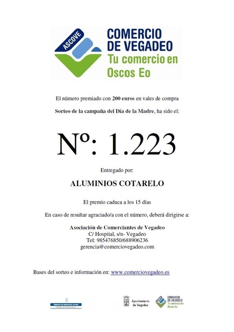 Número premiado en el sorteo de la campaña del Día de la Madre
