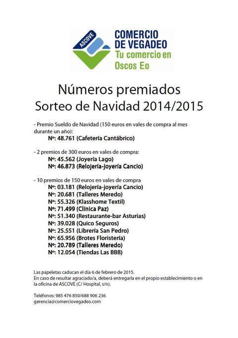 NÚMEROS PREMIADOS EN EL SORTEO DE LA CAMPAÑA DE NAVIDAD