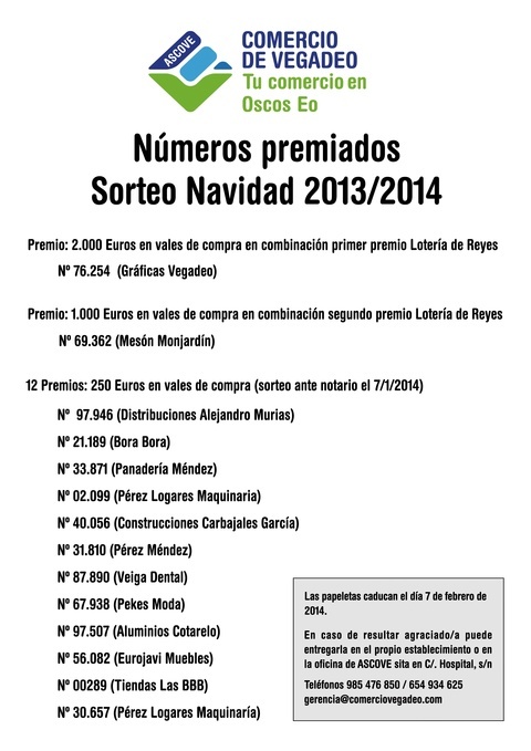 Las personas poseedoras de las papeletas premiadas disponen de hasta el siete de febrero para reclamar el premio. En total, se han repartido 6.000 euros en vales de compra válidos para canjear en cualquiera de los establecimientos asociados.